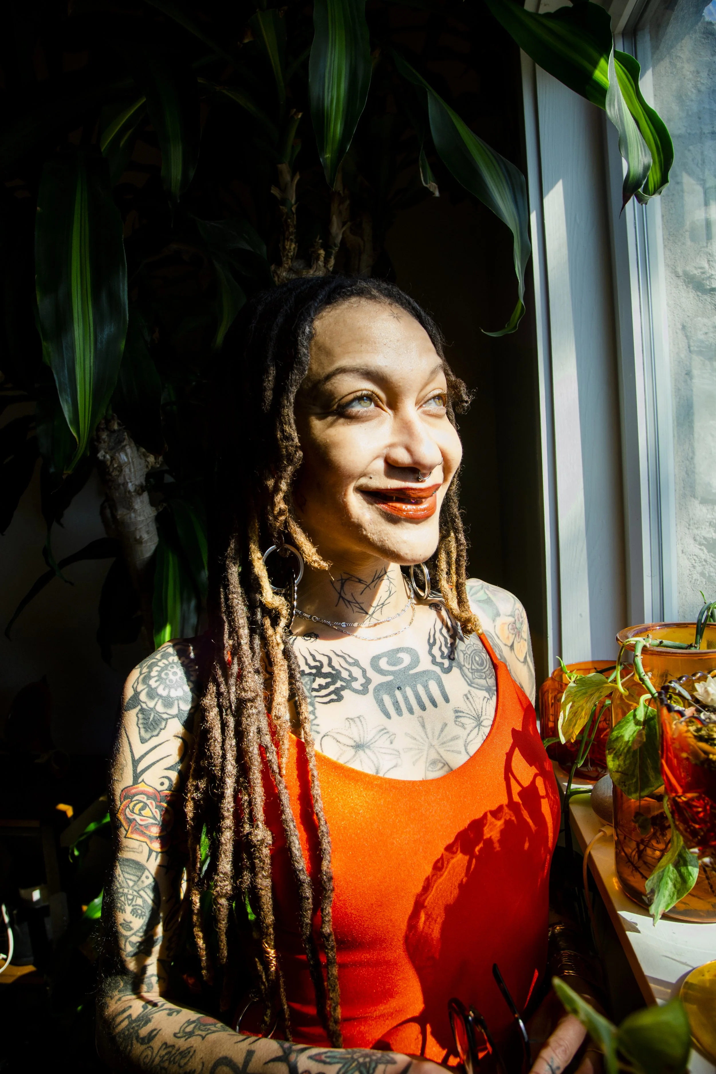 If I’m not practicing my craft, I can be found spending time in my personal plant “forest”, enjoying wildflowers, singing, getting creative in any number of mediums or goofing around with my partner, pup and cat.